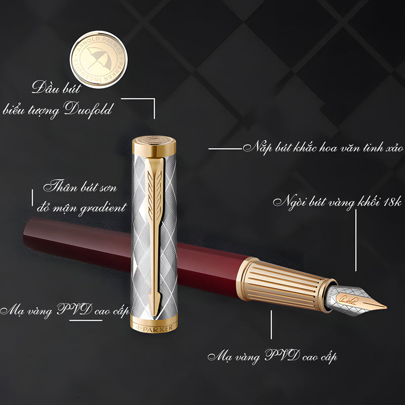 Bút máy ký tên Parker Duofold phiên bản kỷ niệm 135 năm hãng ngòi vàng 18k thân mạ vàng 23k
