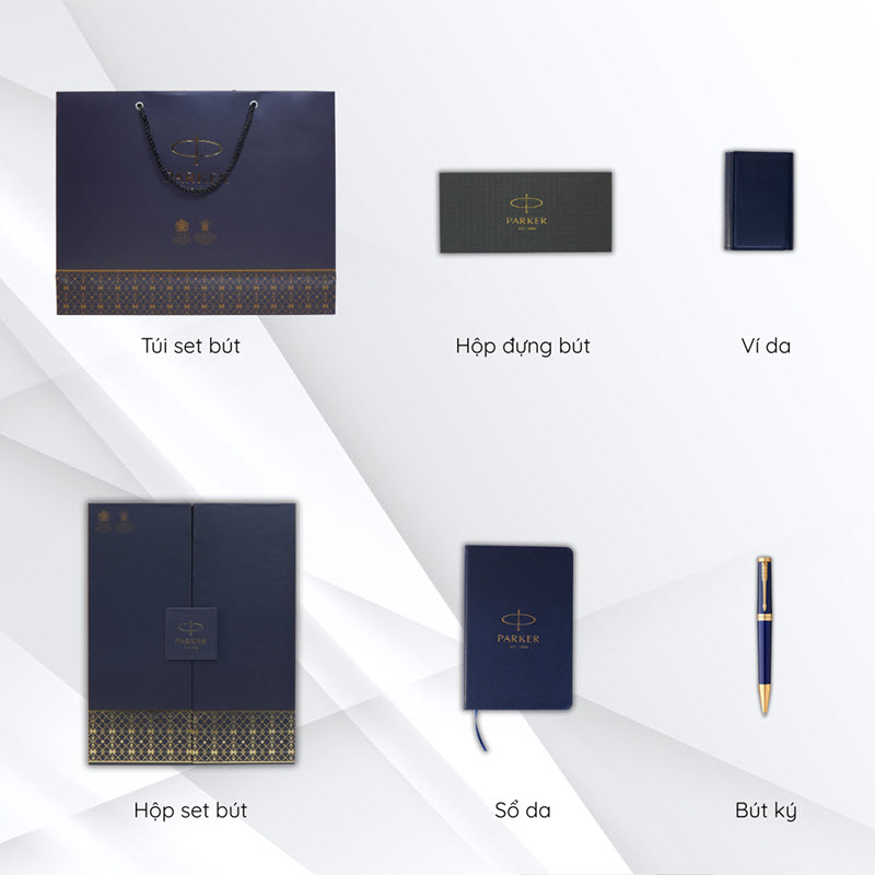 GiftSet bút máy ký tên cao cấp Parker PK874 màu xanh navy kèm mực, hộp và túi hãng