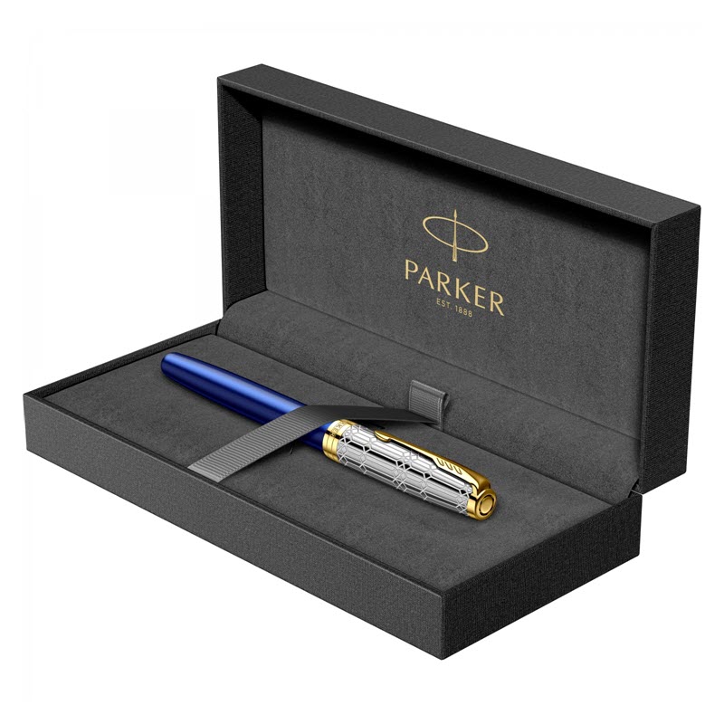 Bút ký lông bi Parker Sonnet – 2175074 (mạ vàng 24k) bản đặc biệt Jubilee – màu xanh sapphire, kỷ niệm 70 năm Nữ hoàng Elizabeth II lên ngôi, là nhà vua đầu tiên của Vương quốc Anh đạt được cột mốc vĩ đại này. Parker tự hào giới thiệu bộ sưu tập Sonnet phiên bản đặc biệt nhằm tôn vinh cuộc đời và sự nghiệp của Nữ hoàng.