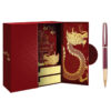 Hộp quà bút ký HUE008 gói gọn và hội tụ tinh hoa Cố đô Huế, với từng chi tiết mang đậm hào khí Việt Nam. Sắc đỏ yêu nước, rồng vàng quyền lực, cổng thành kiên cố – tất cả hòa quyện, trở thành biểu tượng bất diệt của tinh thần dân tộc.